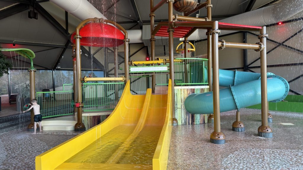 Nieuw sinds ons laatste bezoek is ook een nieuwe glijbaan: een glijbaan met lage intensiteit, maar met uitloop in een losse bak (dus geen zwembad). Dat maakt de glijbaan geschikt voor kinderen om zelf vanaf te gaan (wel toezicht houden natuurlijk).