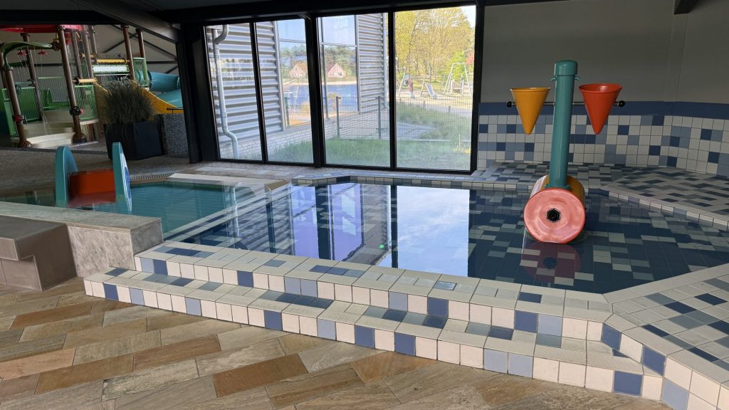 Vanuit het huisje duiken we meteen door naar het zwembad: een fijn bad van 29Β°C. Naast het normale bad (1,4m diep), ligt er nog een peuter/babybadje met daarnaast nog een leuk spraypark. Toegegeven, het is niet het grootste spraypark uit m’n leven, maar het heeft wel veel!