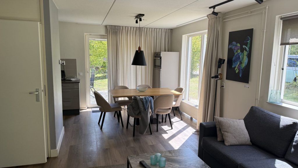 We verbleven in het 6-persoons luxe huisje met de code 6L, deze heeft 3 slaapkamers, 2 badkamers een sauna en een fijn zonnig tuintje. Qua locatie was ons huisje ook lekker centraal op enkele minuten lopen van de centrale faciliteiten, wij hadden huisnummer 19 overigens.